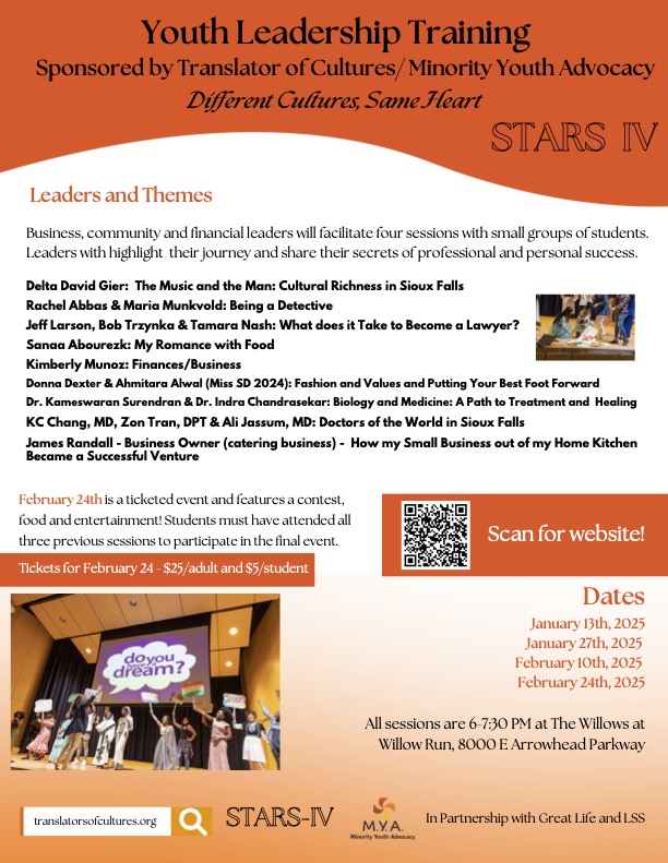 Our organization has designed and implemented programs for the Sioux Falls middle school and high school youth since 2005. These programs directly affect the quality of life for refugees, minorities, immigrants, and new Americans.